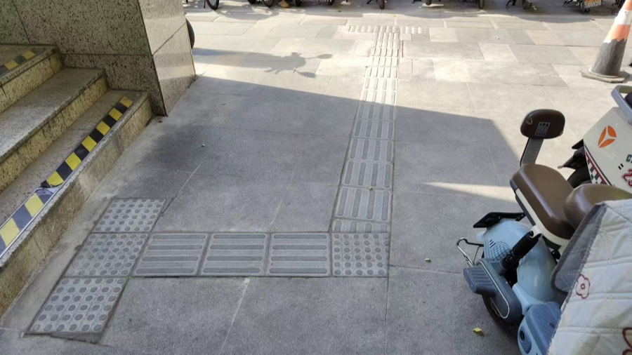 不久前,杨浦区江浦路街道第二综合网格巡查获悉,地铁站出入口与市政道路衔接处的盲道出现局部缺失。