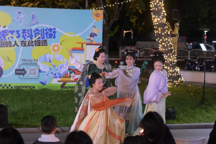 该街区突破物理空间限制,通过主题化运营持续激活街区价值。从早期的美食社交、文创零售,到如今的后备箱市集、科普实验区、汉服雅集等多元化场景,街区成功将草坪、走廊、广场等空间转化为创意发生地。这种持续的场景创新,让科创街从单一的办公研发场所,演进为融合工作、生活与创意的复合型场域。