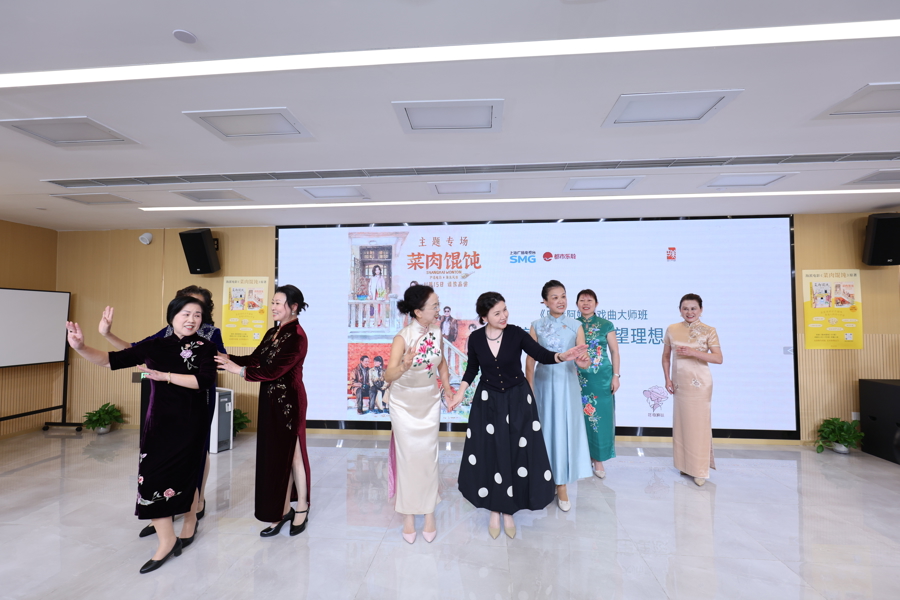 《菜肉馄饨》电影进社区,“时髦阿姐”戏剧营的阿姨们与茅善玉一起演唱《敦煌女儿》