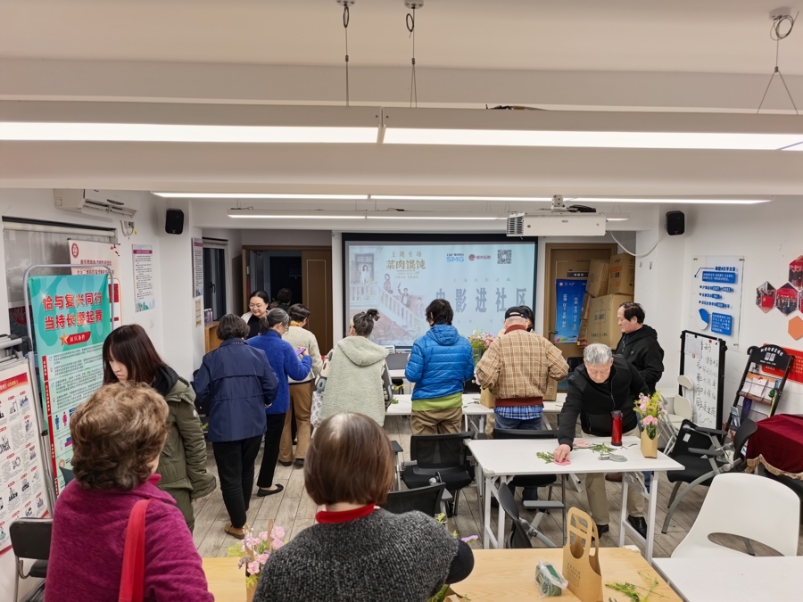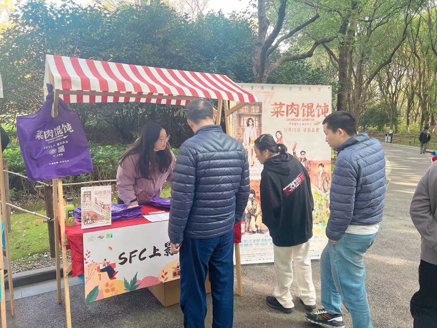 今年9月起,上海电影之城启动“电影进社区”影迷活动,覆盖全市各区,累计铺设点位25处,助力宣传《菜肉馄饨》等上海出品优质电影,为社区居民介绍影片基本信息,发送宣传物料,并联系活动附近影院经理到场优惠售票。陈敏记得,影片在古美社区宣传时,主演茅善玉和“时髦阿姐”一起演唱了《敦煌女儿》的片段,现场热闹非凡,片中的“惊喜彩蛋”乒乓名将倪夏莲来到现场与居民互动,极大调动了居民的观影热情。“主创团队亲临现场,更能带动老年人的观影期待。不少阿姨、爷叔当场表达了观影意愿,上映后很多商户推出联名美食和优惠活动,也离不开前期社区活动积累的口碑与人气。”