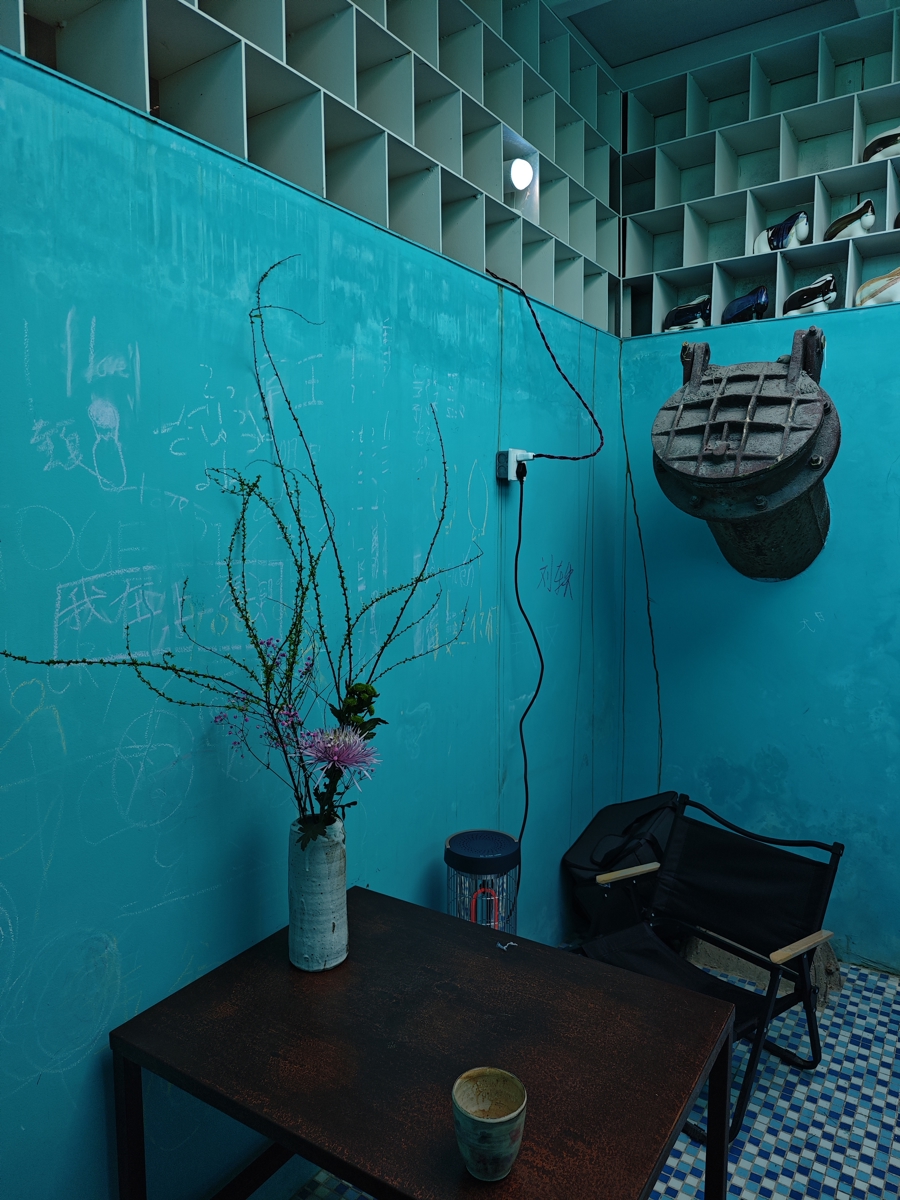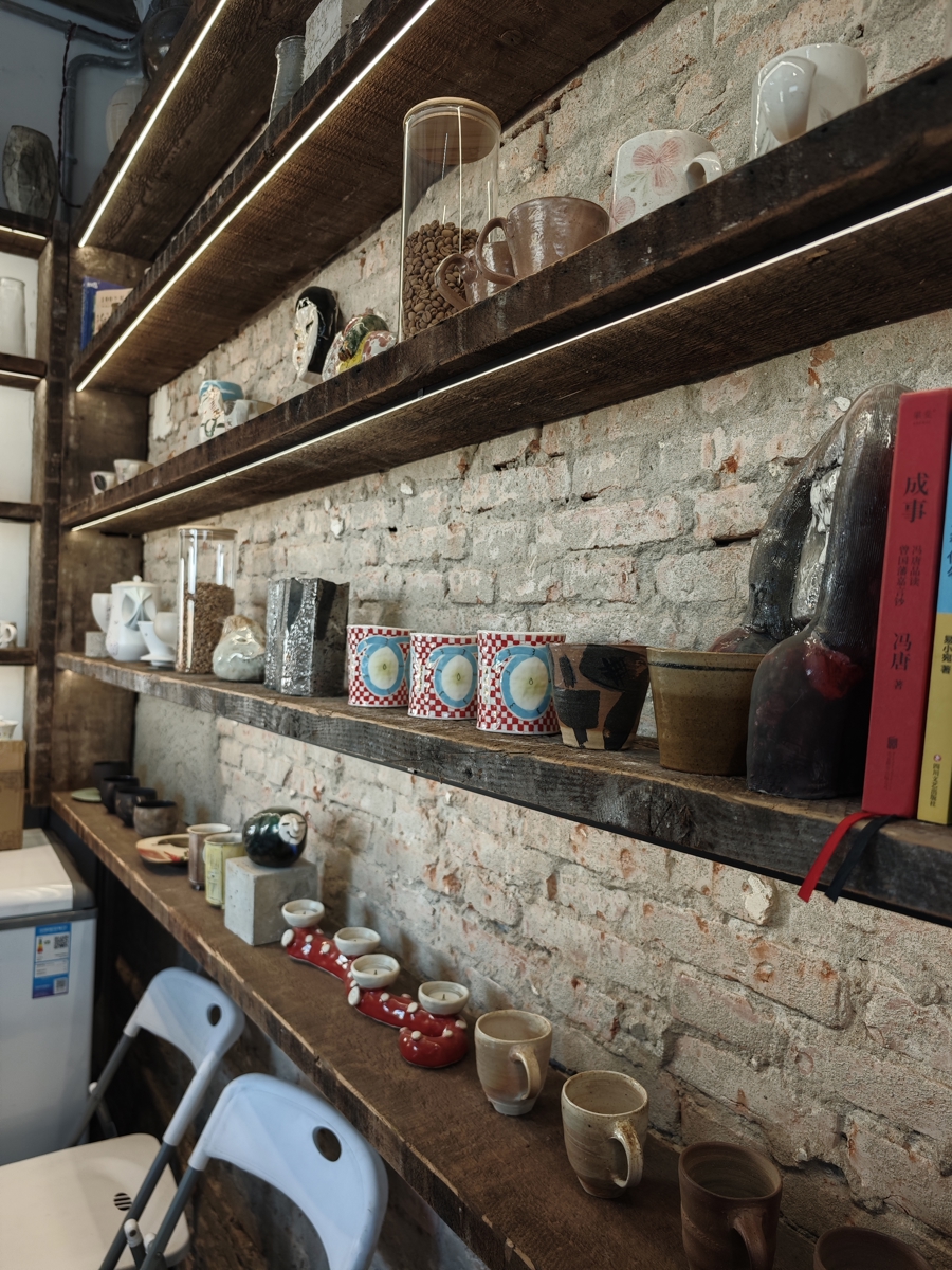 顾客也不只是“美”的“被动接受者”。点评网站上有人留言:“其他店都在用纸杯,在这里居然可以挑选心仪的手作陶瓷杯子喝咖啡,仪式感满满!”店内还有一个水泵房改建的空间,墙面被涂成了蓝色,顾客可以用粉笔留言,写下当日心情。