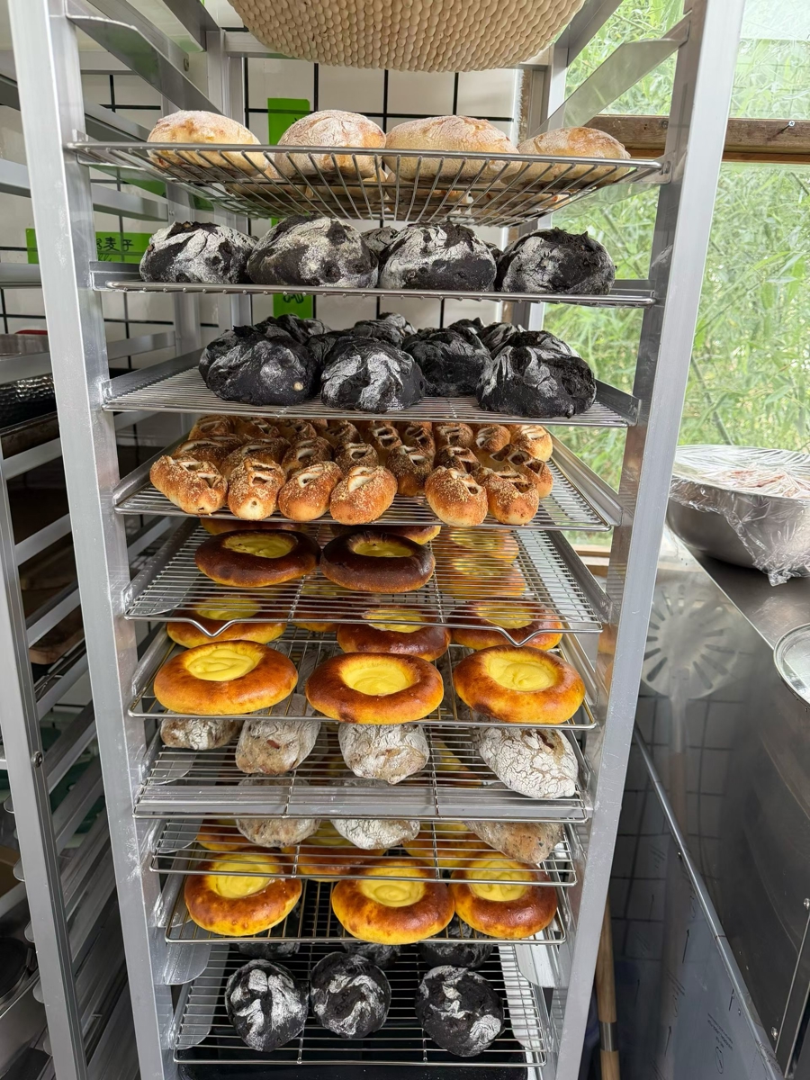 今年10月新开的“树林与麦子”窑烤面包房,更是“开业即爆火”。主理人王婷婷介绍,店里主营欧法包,价格从十几元到三十几元一只不等,有香菜黑椒牛肉、鸡枞菌德肠、南瓜巧克力等不同口味,均是当日现烤。开业以来,日均客流三百多人,周末基本下午两三点就售罄了。