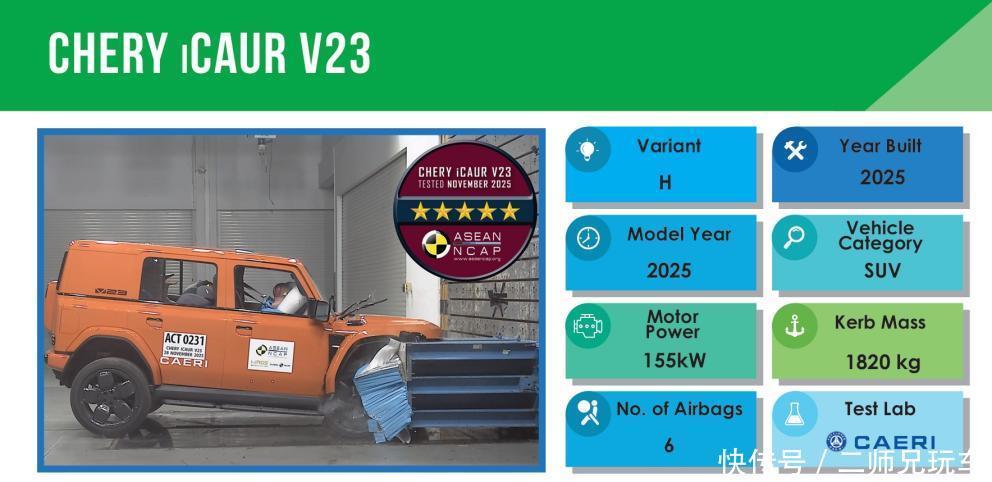 图为iCAR V23获得东盟五星安全认证(ASEAN NCAP)