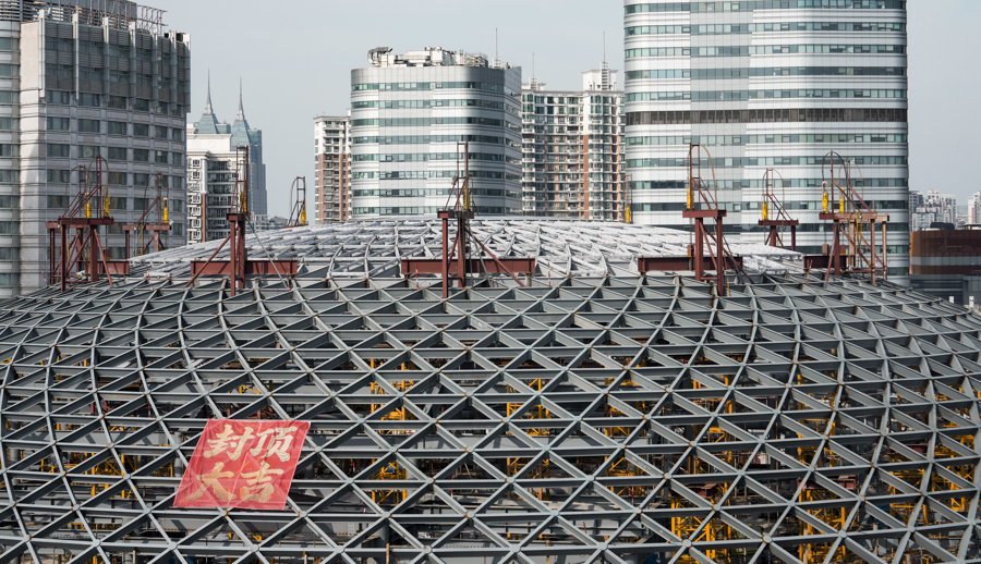 上海国际体操中心改造项目主体结构封顶 摄影记者 陈梦泽(下同)