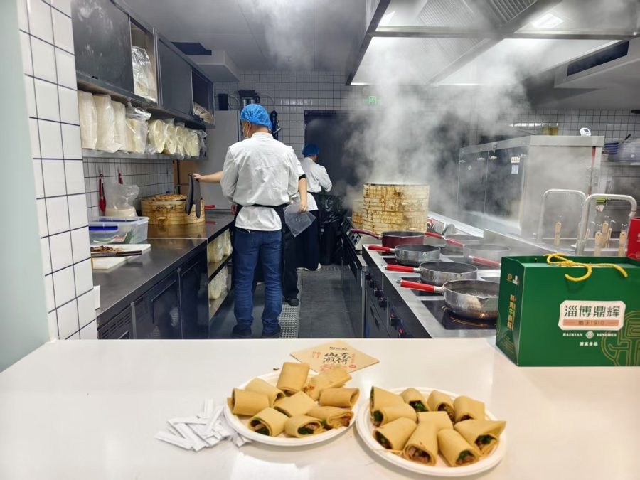 山东馆突破传统展示形式,将展馆设计为集文化体验、美食品鉴与产业延伸于一体的美食盛会,在“明厨亮灶+文化叙事”的沉浸式体验空间,现场展示煎饼卷牛肉、脱脂扒蹄饭、辣子鸡盖饭等传统名吃的制作过程,让观众在氤氲香气中领略鲁菜“食不厌精、脍不厌细”的匠心传承。借助进博会的溢出效应,这些产品还从“展期爆款”转型为“常年热销”,推动企业从“走出来”参展到“留下来”经营。