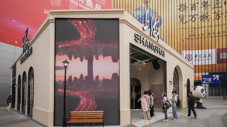 外滩风格的建筑立面,搭配弧形拱窗与精致铁艺,复刻传承百年的建筑美学。巨幕屏上的陆家嘴天际线与城市烟火,构筑起充满活力的国际消费中心城市场景。在第八届进博会主场馆中央广场,以“AI赋能,种草新消费”为主题的上海馆坐落其间,一走近,就有机器人上前打招呼:“您好,我叫小智,可以为您介绍上海馆的各类详情。”